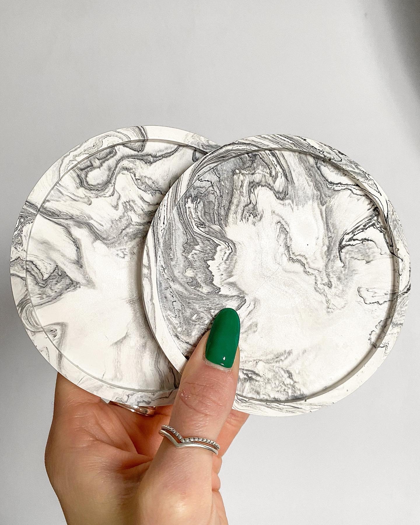 This product is made of an eco-friendly material, Jesmonite. Jesmonite is a durable, heat resistant, eco-friendly, non toxic resin replicating stone. It has a smooth surface which has been sealed to protect your item.