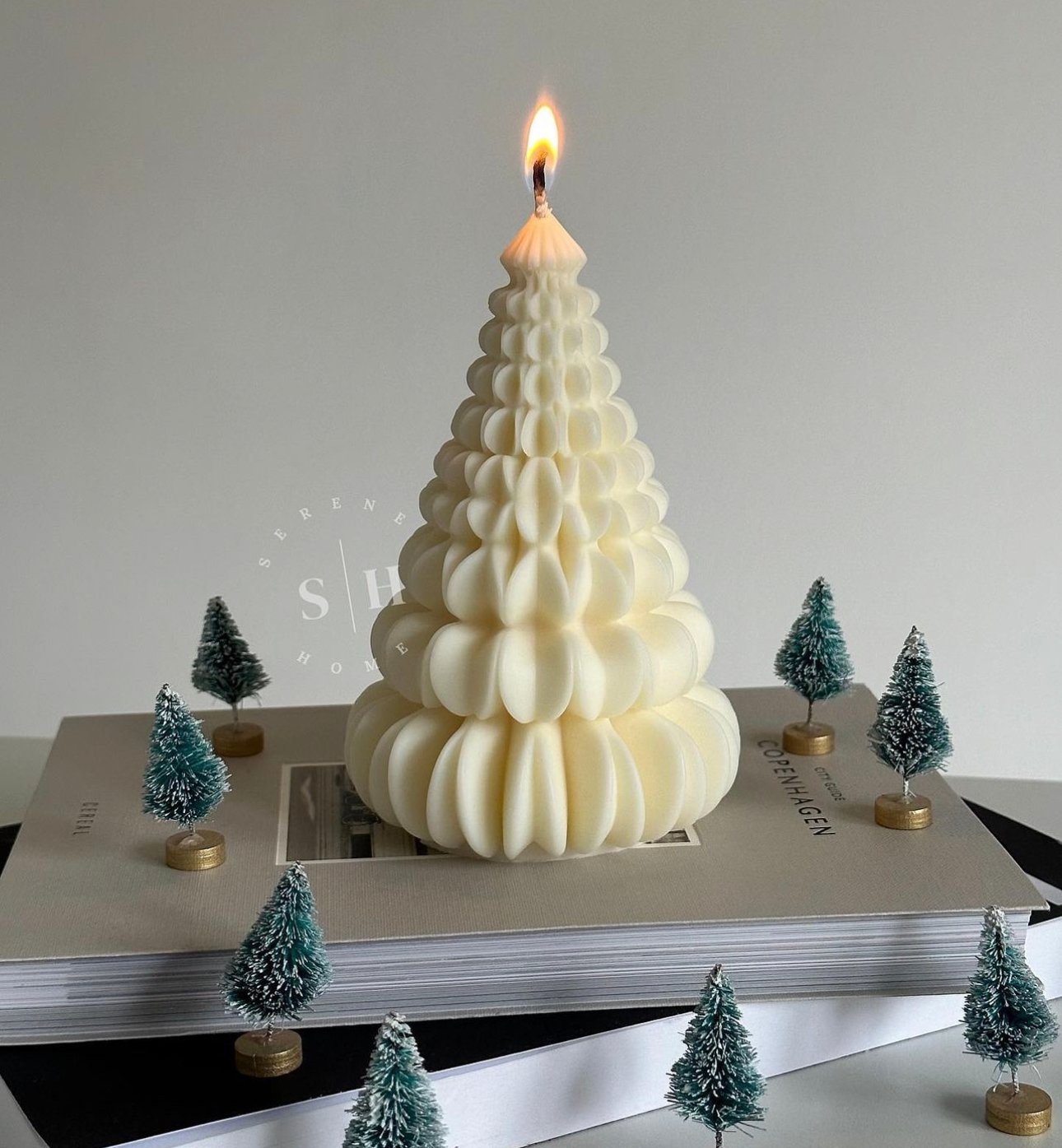 Our Wavy Christmas tree candles are handmade with a luxury soy wax and beeswax blend and are a perfect addition to your home decor.